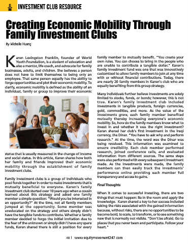 forge opportunities and plot their economic mobility. To are nearly 20 family members in Karen's club who are